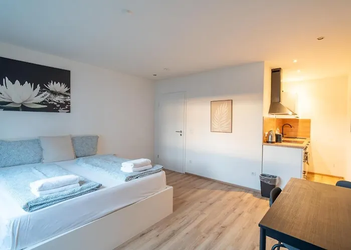 Entre las comodidades de autoservicio se incluye una cocina completa con una cafetera/tetera, una nevera y utensilios de cocina. El apartamento está a unos pasos de la parada de autobús más cercana, Closterbrauerei.